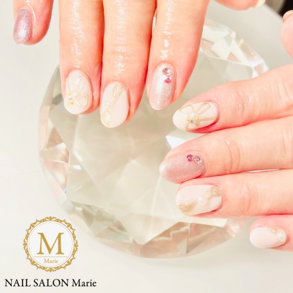 リボンのニュアンスアートで華やかな感じに🎀