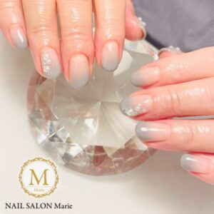 こんにちは❣️久々のブログです。秋ネイルご紹介していきます☺️グレーでグラデーションをしパールをのせましたほ✨