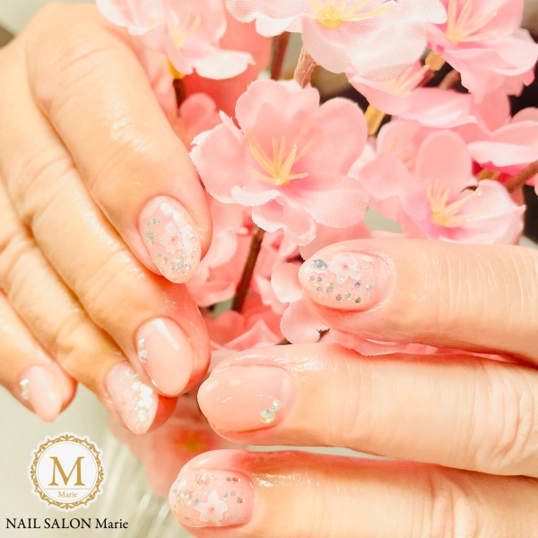 桜ネイルから🌸春らしいピンクに桜を散りばめました❣️