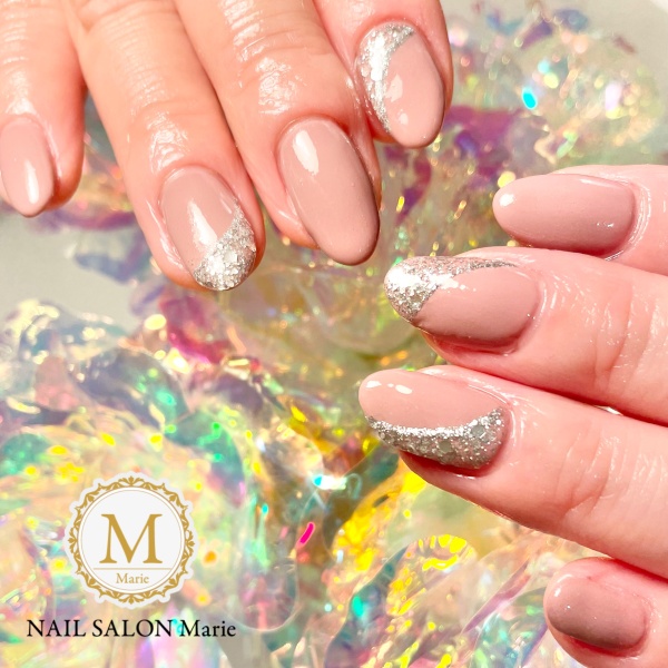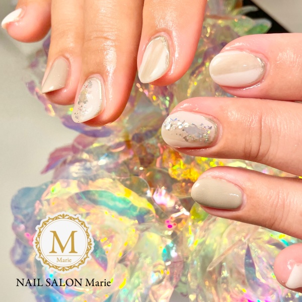 春っぽいベージュカラーにポイントアートで素敵に仕上がりました😆