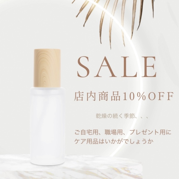 少し肌寒くなりましたが皆様しっかり保湿してますか?マリーでは只今、店内商品10%OFFをおこなっています💕