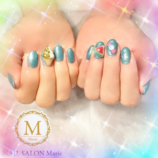 オーロラカラーにブルーのストーンを差し色で入れました😊