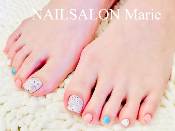 オレンジ系の色でさりげなくシェルを散らばしました💓